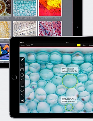 Edit by making measurements, by selecting an area with different shape options or by writing notes